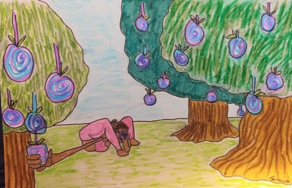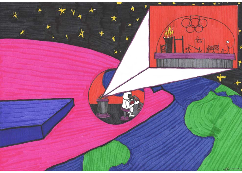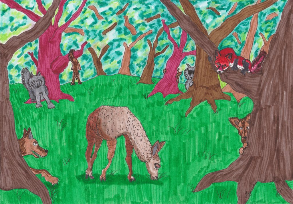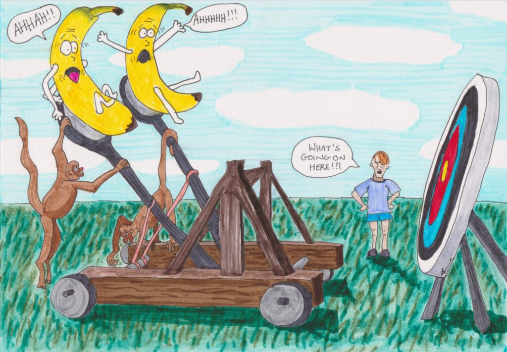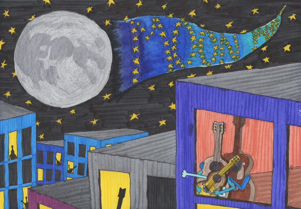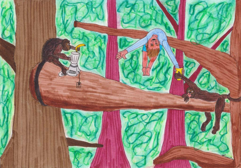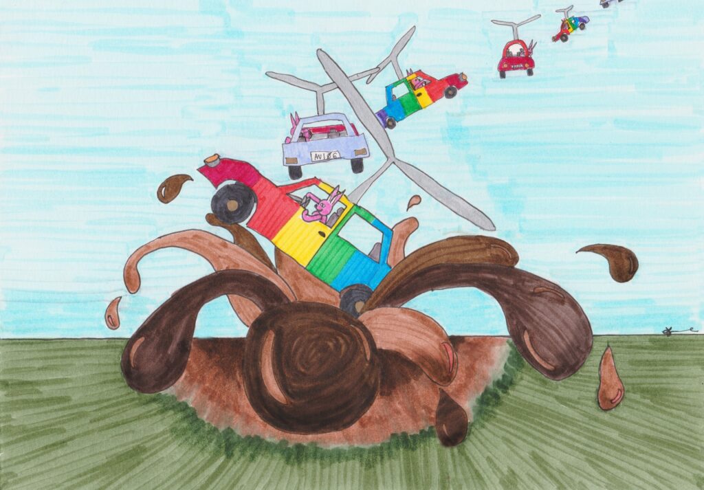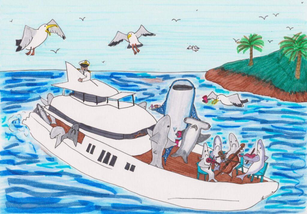 Natalie, almost 9: “A very stretchy person surrounded by fruit that has swirls on it”Simon, 4: “A robot house. Not a house for robots. It’s a house that folds up into a robot.”Anders, 8: “A picture of a picture inside the picture.”Benjamin, 11: “A dog with a very long tongue chasing a squirrel with a very big tail in the middle of a corn field.”Jaya, 8: “A microscopic gymnastics in a space ship looking at the enormous earth.”Mae, 11: “A brownie drinking ice tea in an English castle.”Alex, almost 5: “A pink, purple, gold, and silver mermaid eating cake at a mermaid restaurant.”Harry, 6: “A half alien half bull half pig half elephant half tiger in a space ship on Jupiter”Walter, 10: “A flute playing a violin that’s playing a trumpet in an outer space orchestra.”Harry, 6: “A manta ray peeking out of a cave with a crown and a necklace with a star on the necklace and the cave is surrounded by other cow nose rays holding spears coiled up in its wings.”Jack, 2: “Lynne making a dragon.”Gretchen, Age 7: “Quinn the dolphin jumping out of the water, with her friend Maya also a dolphin.”Jamie, almost-3: “A dinosaur playing outside a castle.”Anders, 8: “A scary, demon-like two-headed dragon breathing fire from one head and lightening from the other.”Astra, 2: “A guitar that can see.”Avi, age 6: “A rainbow car spinning fast in the mud that looks like a helicopter.”Levi, age 8: “A tan llama eating grass in the forest, with a sneaky fox, sneaky coyotes and wolves during the day.”Aashi, age 6: “There is a unicorn and an elephant at a watering hole. The unicorn is drinking water. Very thirsty. The elephant is taking water in its snout and shooting it at Aashima who is collecting water from the watering hole with a bucket and water bottle. The unicorn has wings so she flew to a forest where there was a lake with ducks. Unicorn flew away. Elephant is shooting at Aashi in her face and she has to try to get water before it goes down.”Friday, age 8: “Three Christmas gnomes playing in the snow in the yard of their house. One is making a snow angel and the other two are in a snow ball fight.”Rafi, age 11-months: “Duck!”Ava, age 8: “Three fashion models who are best friends backstage hugging”Marlowe, age 6: “A big, mean monster stomping around San Francisco.”Fiona, age 7: “A cheetah eating a plate of chicken nuggets at a restaurant.”Beau, age 6: “Be a snake.”Thea, age 10: “A concert on a yacht that’s being over-run by walking sharks and there is a bunch of seagulls in the air.”Gavin, age 8: “Two monkeys in a tree. Drinking banana smoothies and I (Gavin) am doing backflips in the forest with them.”Roman, age 10: “A character from Minecraft chopping down a tree.”Roslyn, age 8: “A kitty at a tea shop with a dog wearing a t-shirt that says ‘this is my tea shop.’ Also, there’s no people in the world, only animals. And then raccoons are around them dancing in the tea shop background.”Jake, age 6: “A horse galloping on a car surrounded by people taking photos.”Gunnar, age 12: “Queen Victoria at a tea party and Queen Elizabeth the First comes down as a ghost and steals their tea.”Ronan, age 9: “I want to see two monkeys with a catapult and I want some big giant bananas sitting in the part where the rocks go and I want the setting to be in a field but I want me standing in the background putting my hands on my hips and going, “what’s going on here?!” and the bananas are screaming.”Bennett, age 6: “A country called Zib Zob and in Zib Zob there’s a flying dragon and clay sculptures what can move.”